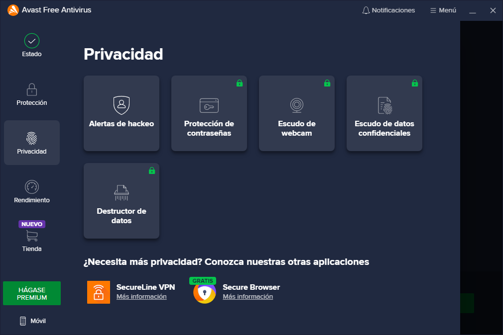 En el menú lateral podemos ver todas las herramientas de protección que podemos usar.
