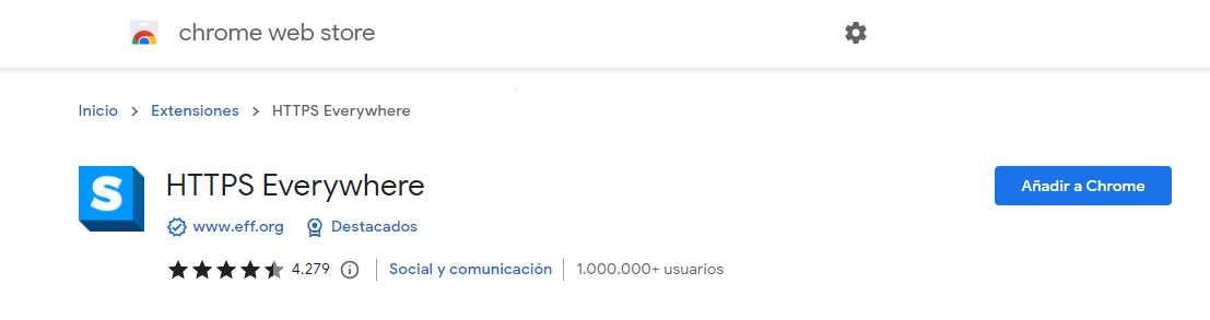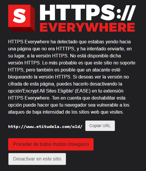 Esta extensión proporciona automáticamente cifrado HTTPS cuando se conecta a sitios web que no lo ofrecen.