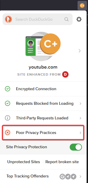 Esta extensión nos permitirá ver la privacidad de los sitios web como YouTube.