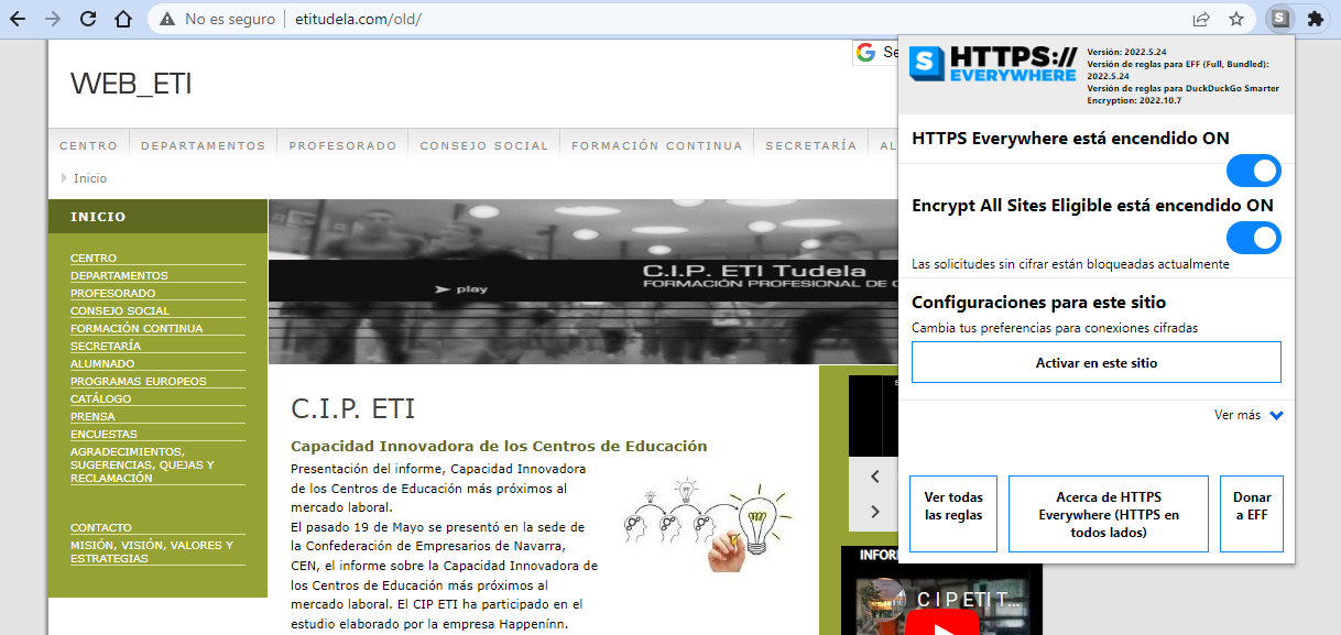 Para comprobarlo podemos entrar en la página web antigua del CIP ETI y activaremos la extensión.