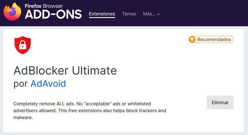 Esta extensión, bloquea todos los anuncios de las páginas web.