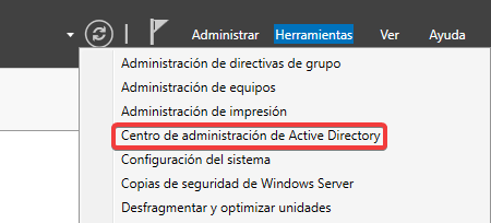 Primero, iniciaremos el Centro de administración de Active Directory.