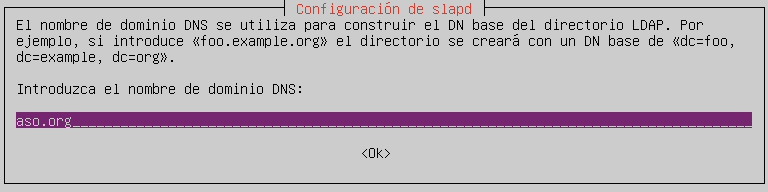 Indicaremos el dominio y la dirección del servidor LDAP.