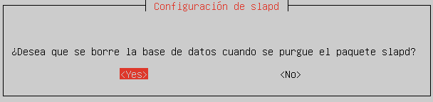 Indicaremos que sí queremos purgar la base de datos si borramos el paquete, aunque no va a ser el caso…