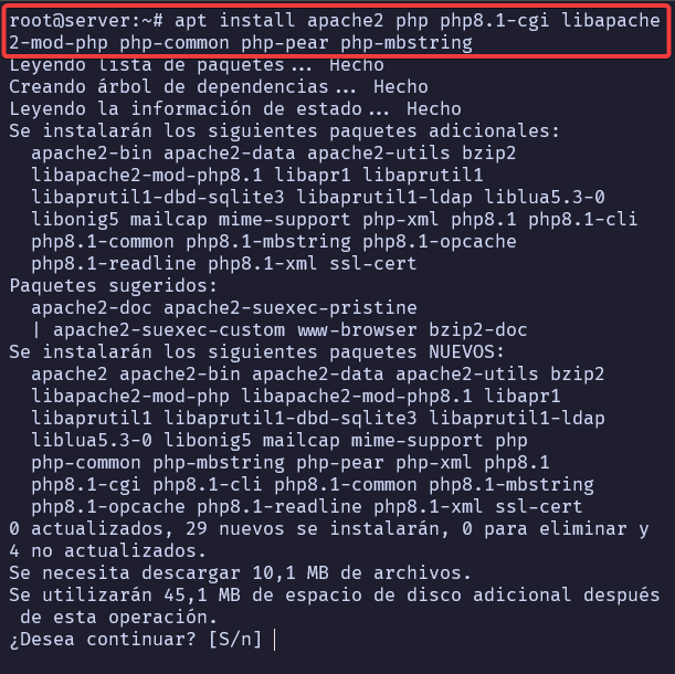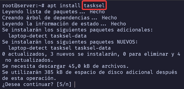 Después de un buen rato, tendremos una interfaz gráfica en el servidor.