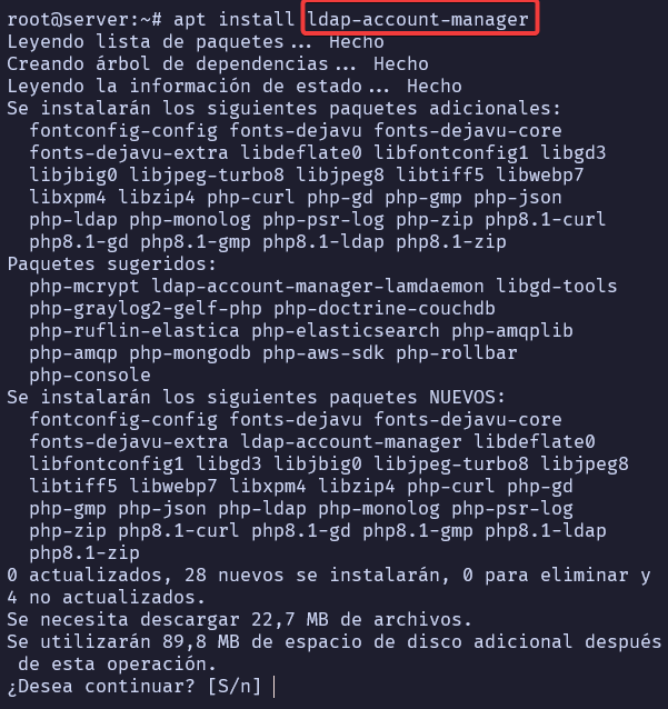 Instalaremos los paquetes necesarios para el servidor de administración web LAM (LDAP Account Manager).