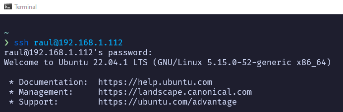 En mi caso me conectaré, por SSH desde la Terminal de mi máquina física para la configuración.