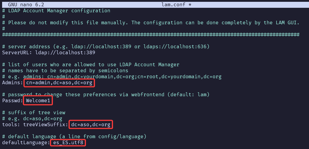 Configuraremos el archivo lam.conf