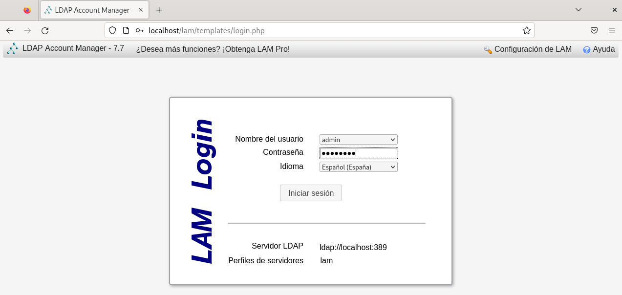 Accederemos al panel de LAM desde el navegador web.