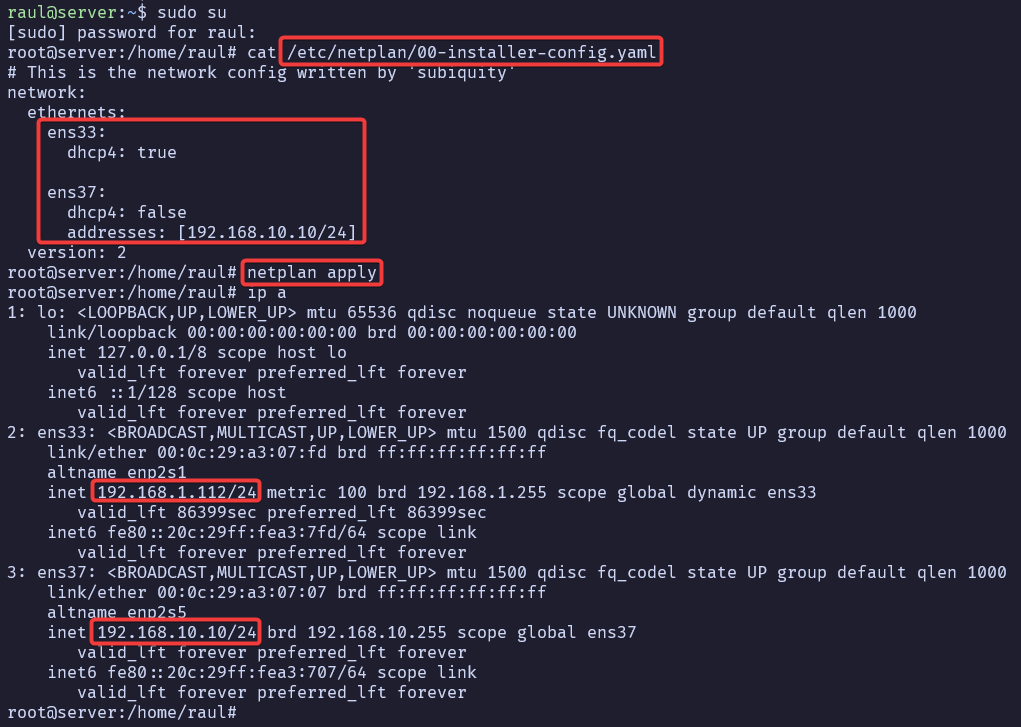 . Aplicamos los cambios con el comando netplan apply