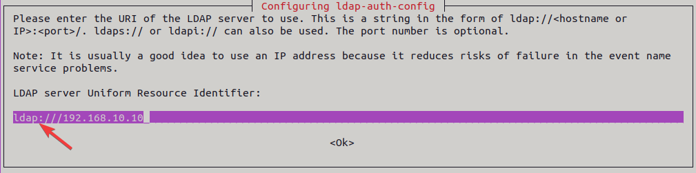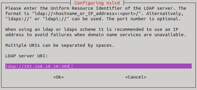 En esta ventana, indicaremos la dirección IP del servidor LDAP.