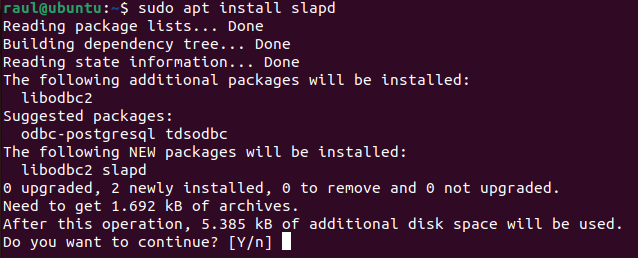 Luego, instalamos el paquete slapd