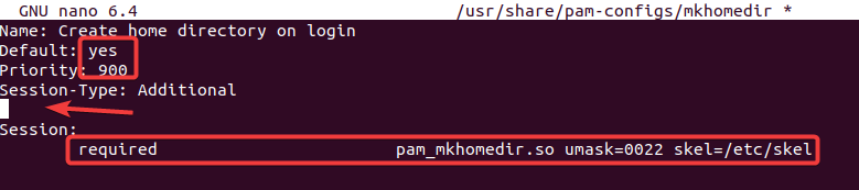 Después editamos el archivo /usr/share/pam-configs/mkhomedir