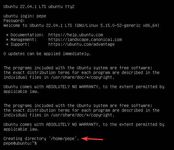 con las teclas CTRL + ALT + F2 y entraremos con el usuario pepe