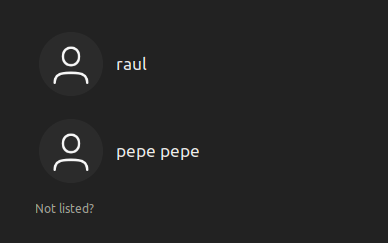 Para volver a la interfaz gráfica pulsaremos las teclas CTRL + ALT + F1. En el login, veremos los dos usuarios, y ahora podemos acceder con pepe