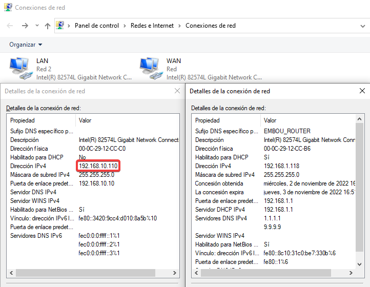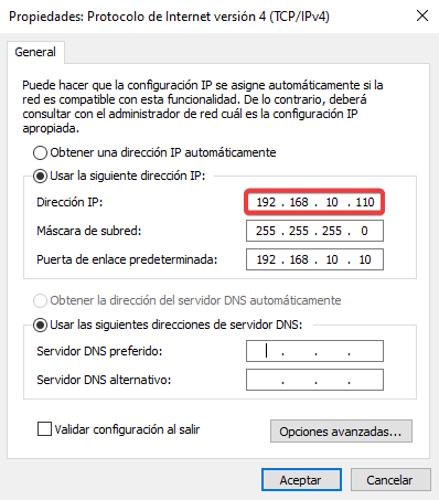Configuraremos la dirección IP estática en el adaptador LAN.