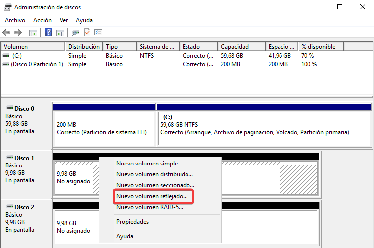 Desconectaremos un disco y no perderemos los datos, porque los datos están duplicados. Por lo que aún podemos seguir utilizando el RAID pero sin tenerlo reflejado.