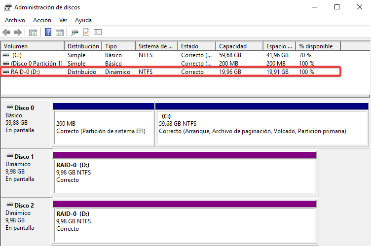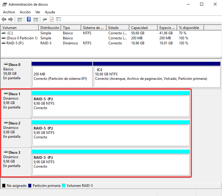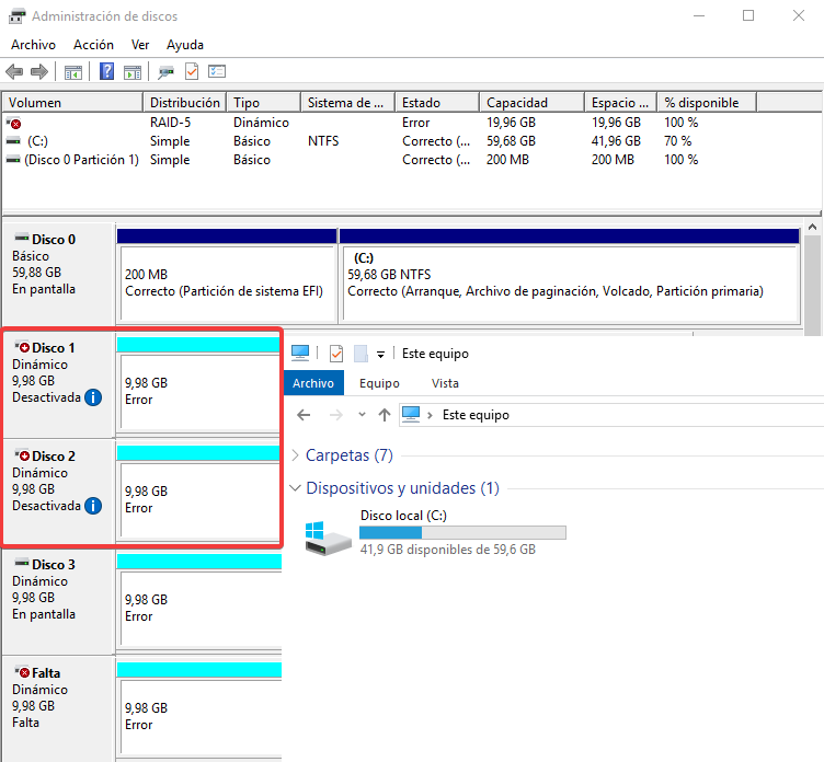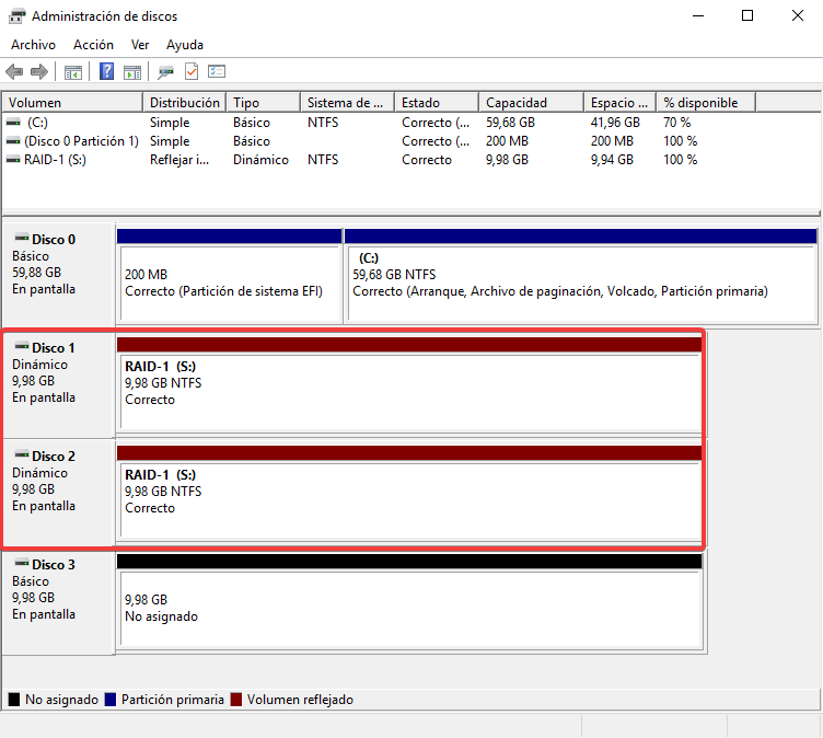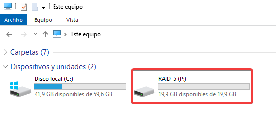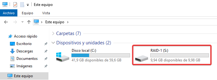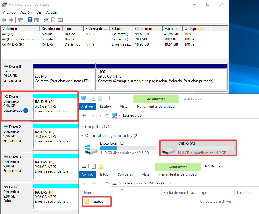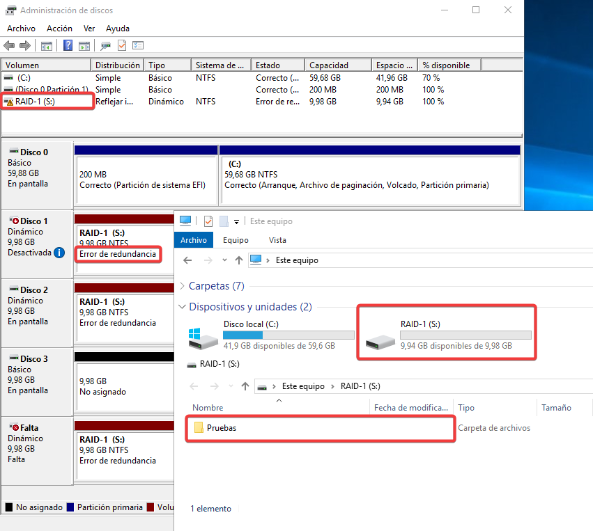 Ahora, desconectaremos un disco y comprobaremos que aún funciona.