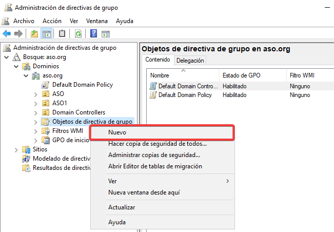 ¡Importante! Vinculamos la GPO sobre el dominio aso.org
