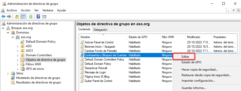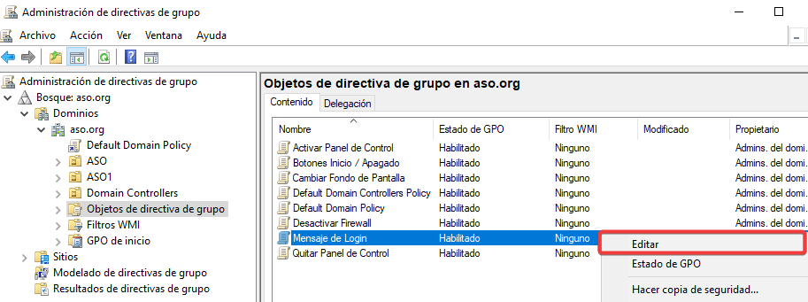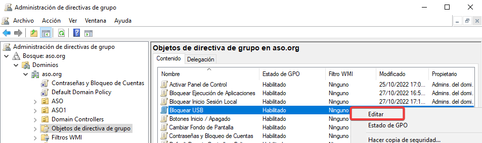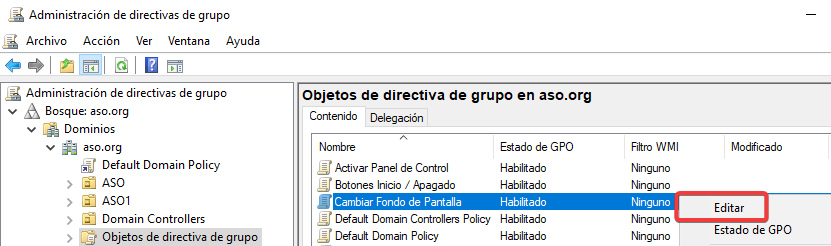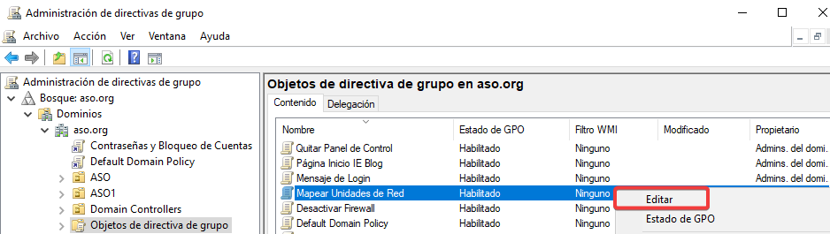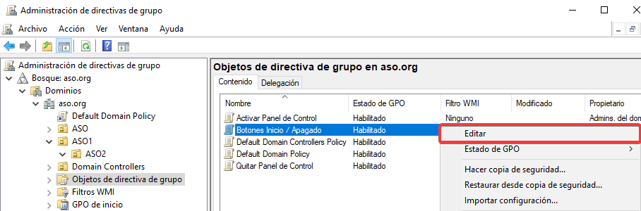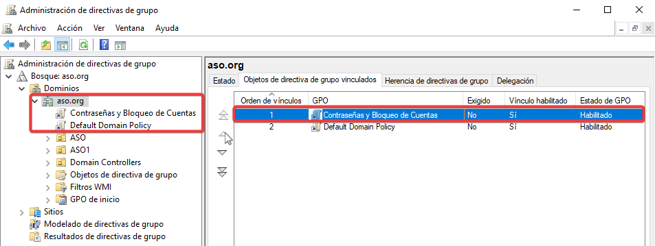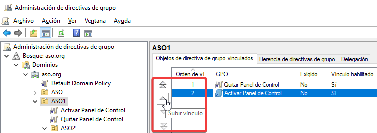 Vinculamos esta nueva GPO con una configuración contraria a ASO2.