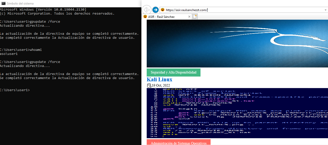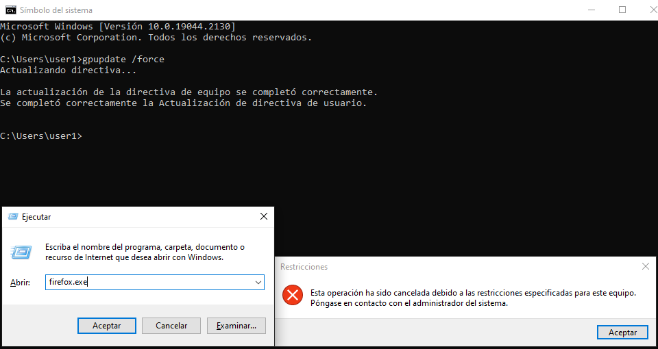 Desde el user2, actualizaremos las GPOs y veremos que ahora sí que podemos acceder.