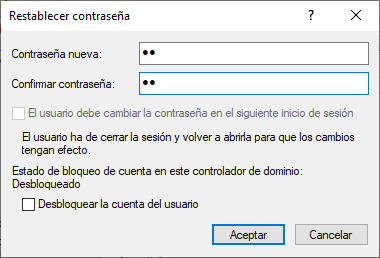 Deshabilitamos los requisitos de complejidad y establecemos una longitud mínima de 2 caracteres.