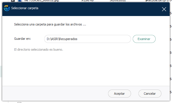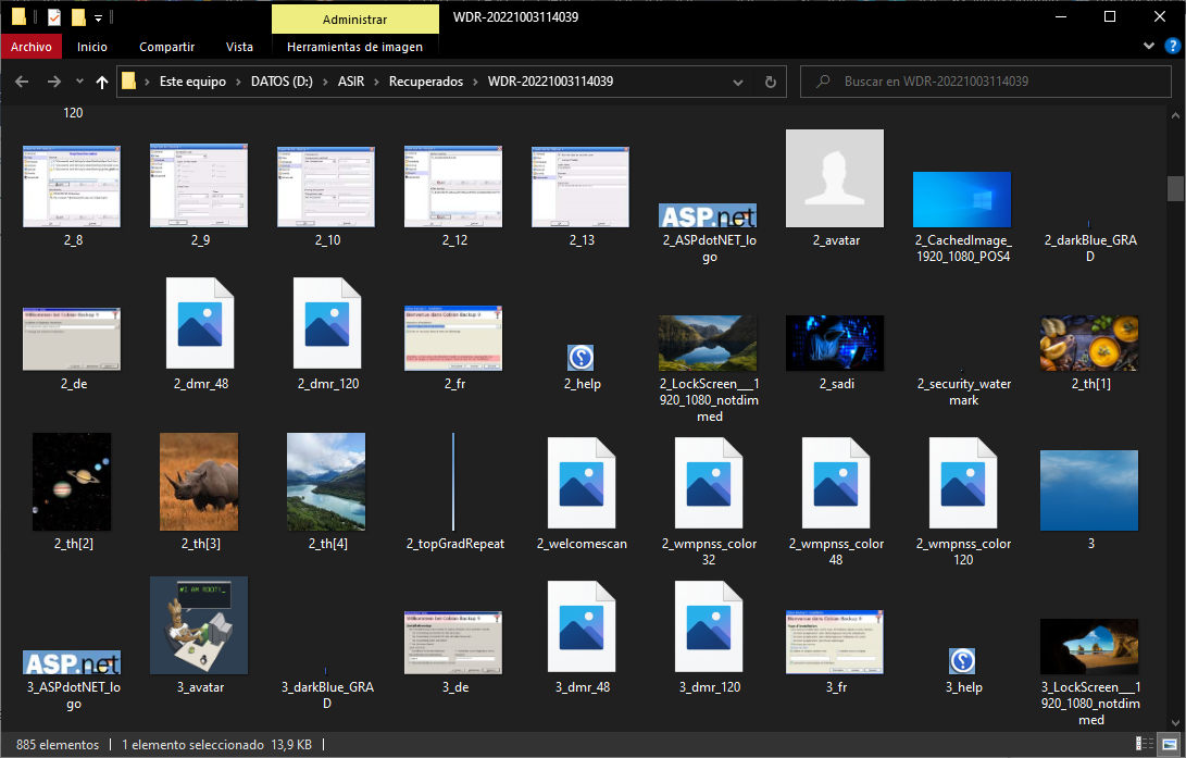 Luego seleccionaremos que solo queremos recuperar los archivos de imágenes. Con extensión .jpeg