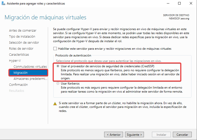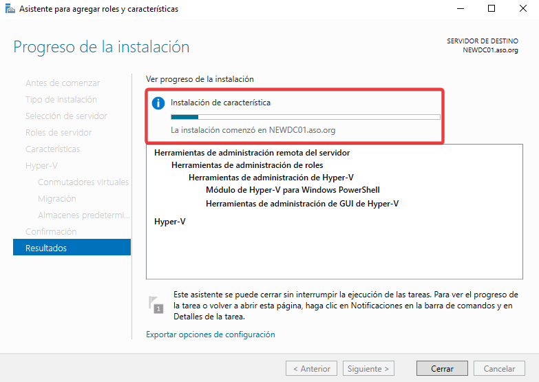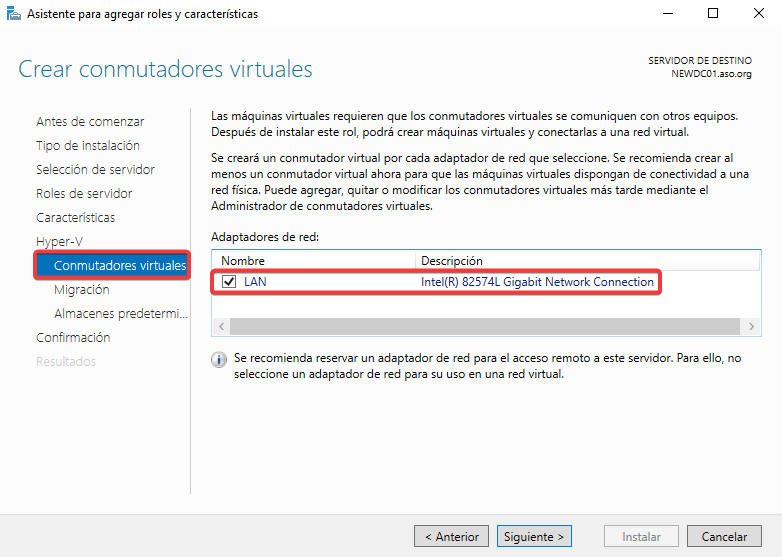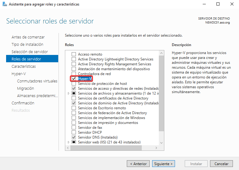 Instalamos el rol Hyper-V en el servidor NEWDC01.