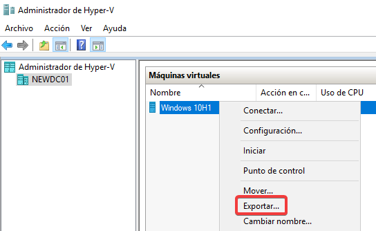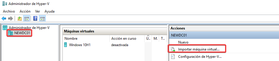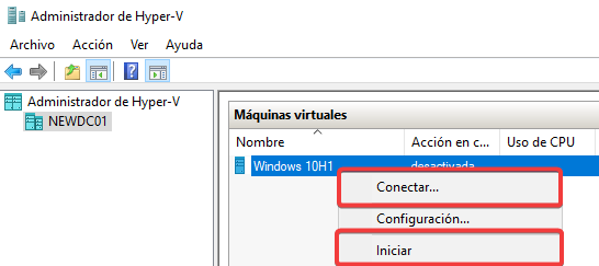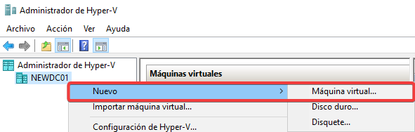 Una vez lo hayamos instalado, entraremos en el Administrador de Hyper-V y crearemos una nueva máquina virtual.