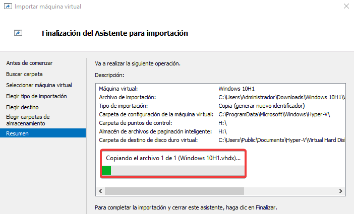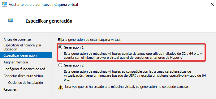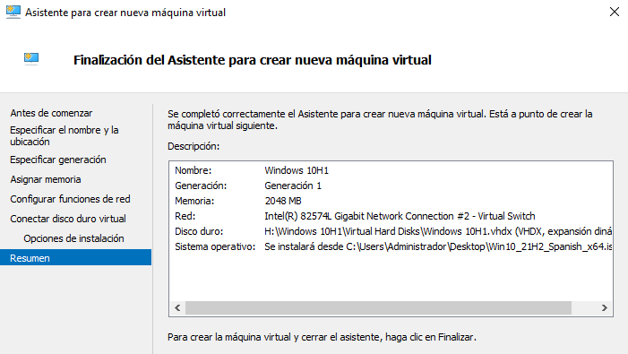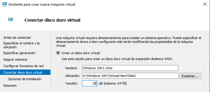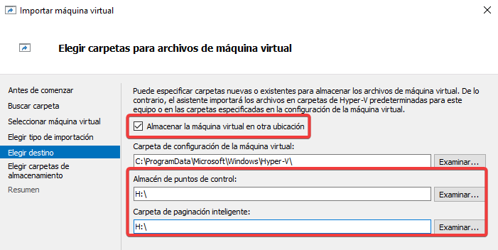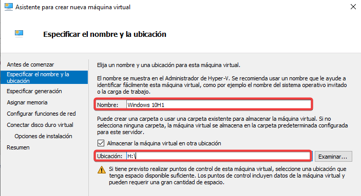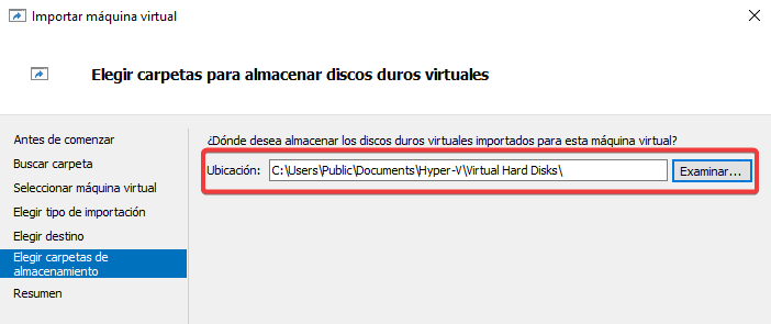 Hyper-V creará una carpeta dentro de la unidad para esta máquina virtual.