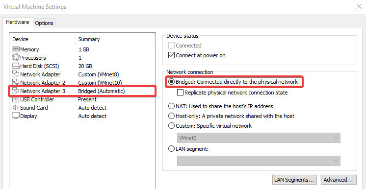 Primero, añadiremos otra interfaz de red a la máquina virtual de PfSense. En mi caso he añadido una Bridged pero cualquier interfaz WAN es válida.