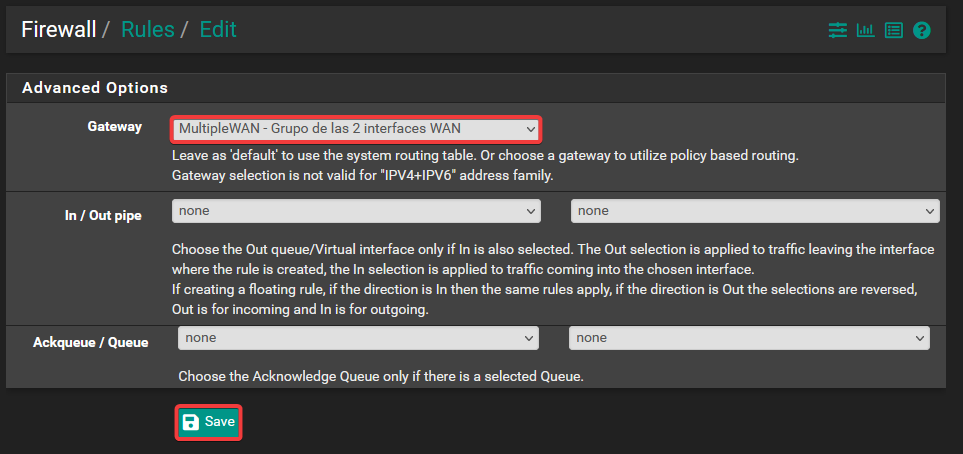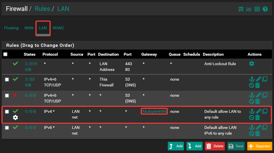 Después, editaremos la regla del cortafuegos de la interfaz LAN.