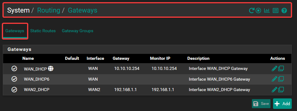 Ahora, veremos las puertas de enlace que tiene configuradas este router.