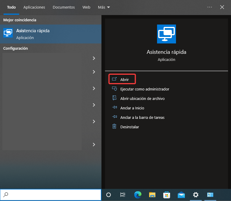 Primero, buscaremos la aplicación de asistencia rápida en una máquina Windows 10.