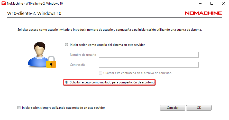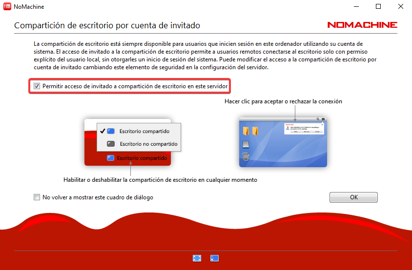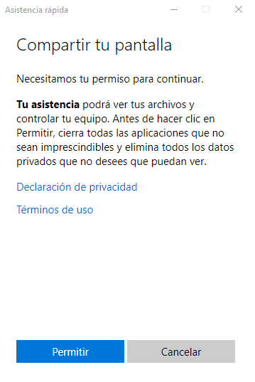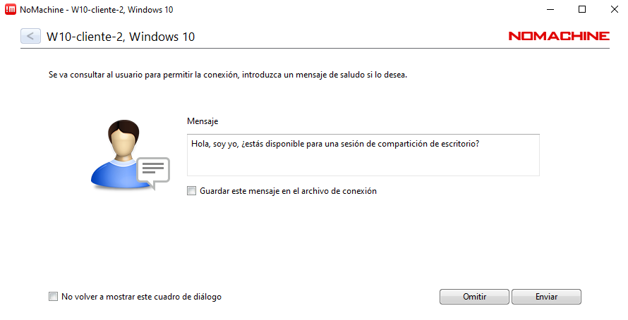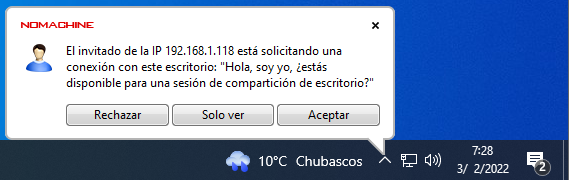 En la máquina de destino, aparecerá este mensaje, que aceptaremos.