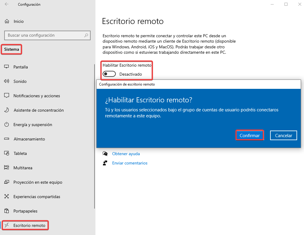 Primero, tendremos que habilitar el escritorio remoto de la máquina Windows.