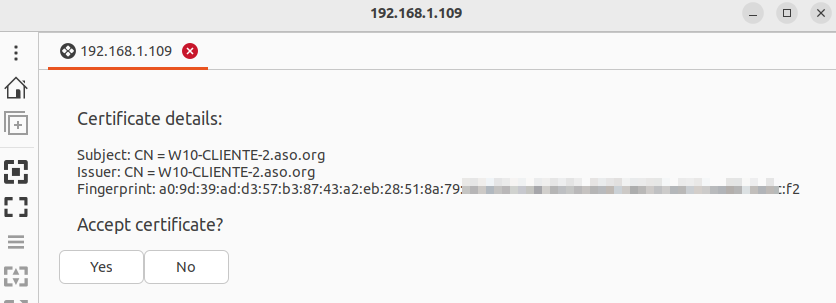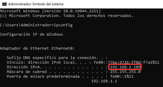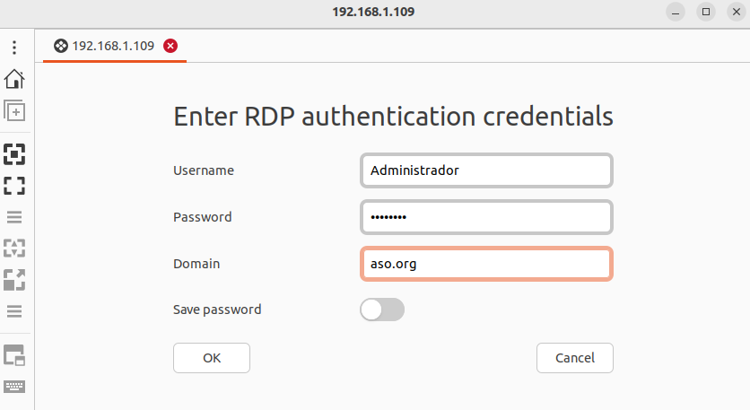 En la máquina Ubuntu introduciremos la dirección IP del equipo Windows.