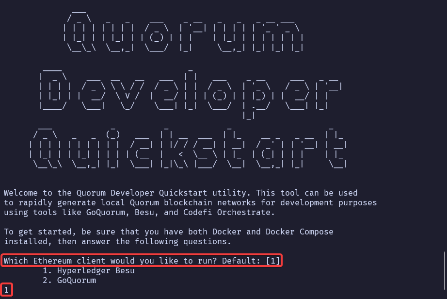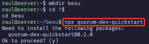 Para empezar, instalaremos Quorum Dev Quickstart utilizando npx para que descargue el paquete como haría npm y además lo ejecute.