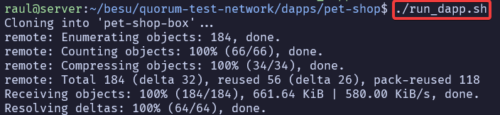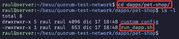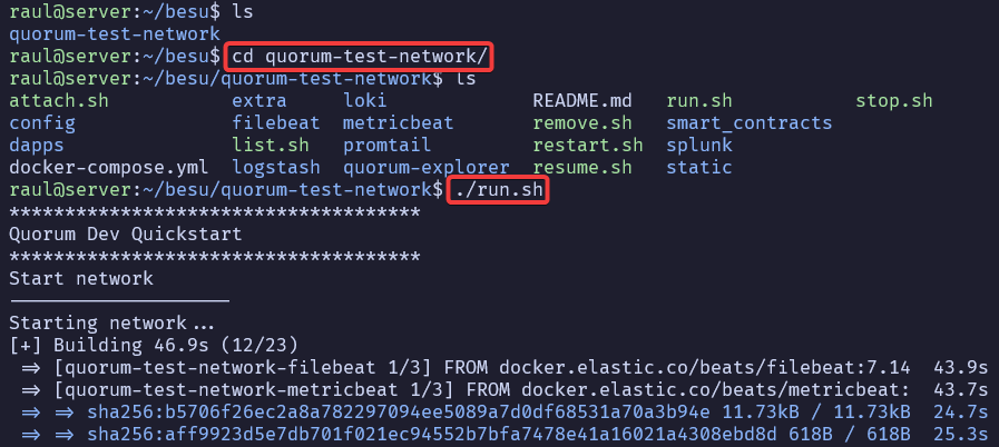 Luego, accederemos a la carpeta que se ha creado y ejecutaremos el script run.sh y esperaremos a que se inicie la red.