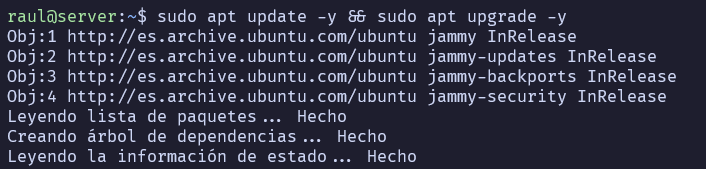 Nos conectaremos desde nuestro equipo local y actualizaremos los paquetes.