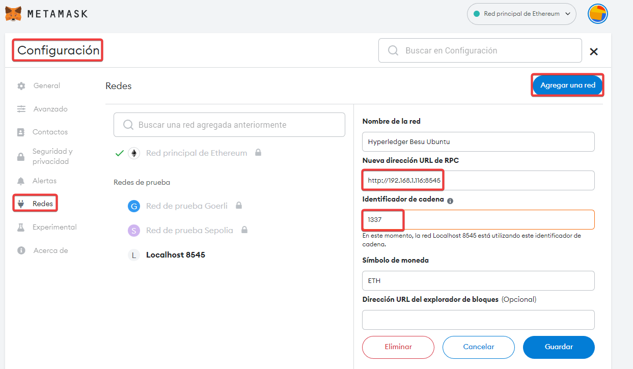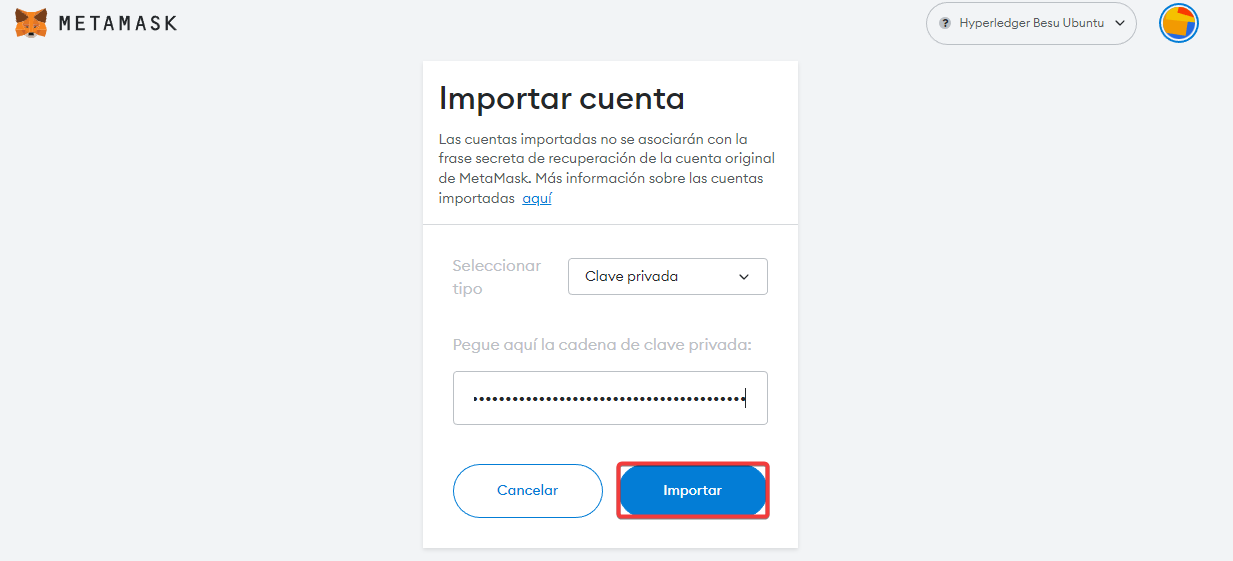 Después de añadir la red, importaremos una cuenta nueva a esta wallet.