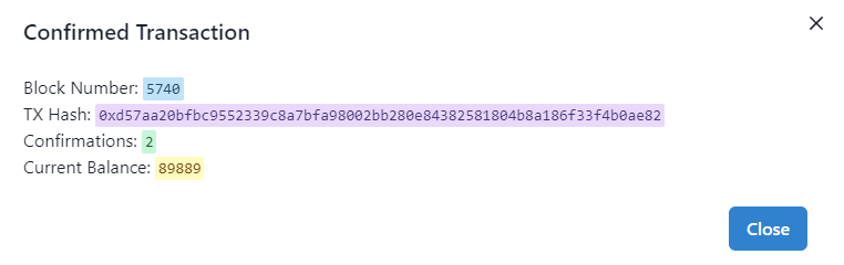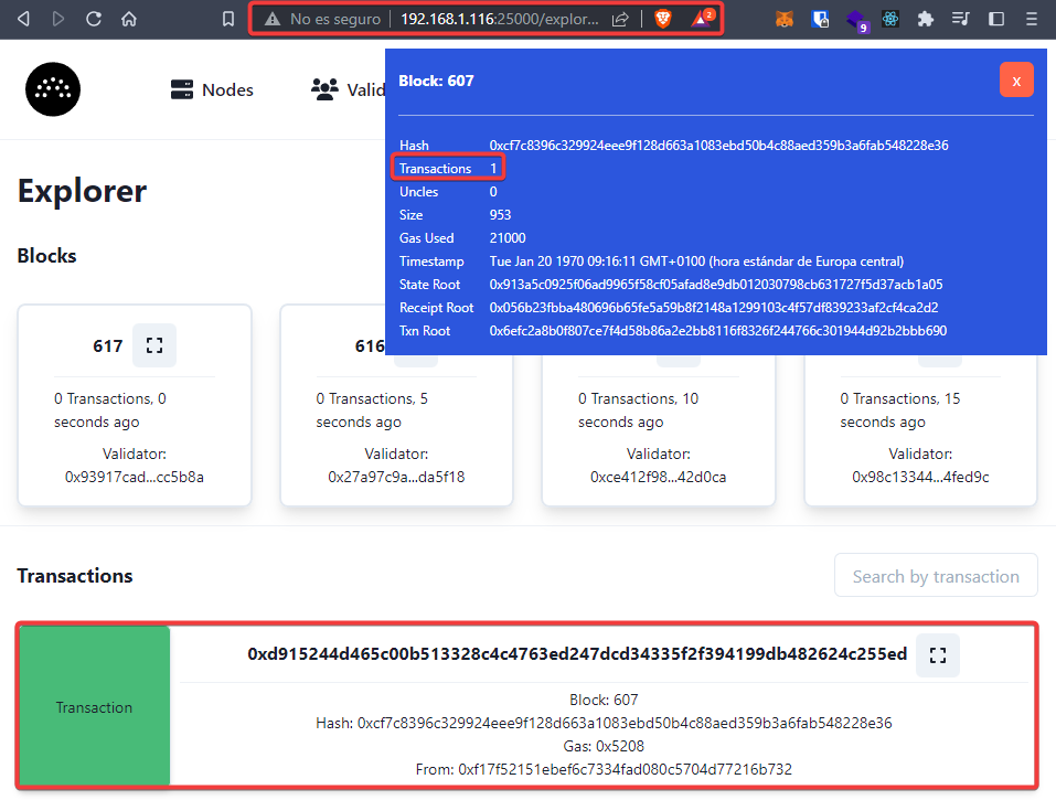 Aparecerá una ventana emergente, donde veremos el número del bloque donde se ha almacenado la transacción.