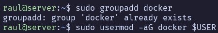 Añadiremos el usuario actual al grupo de Docker