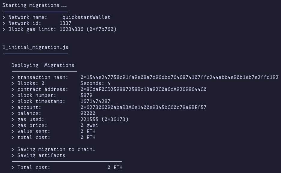Observaremos que comienza la migración de un contrato a nuestra blockchain
