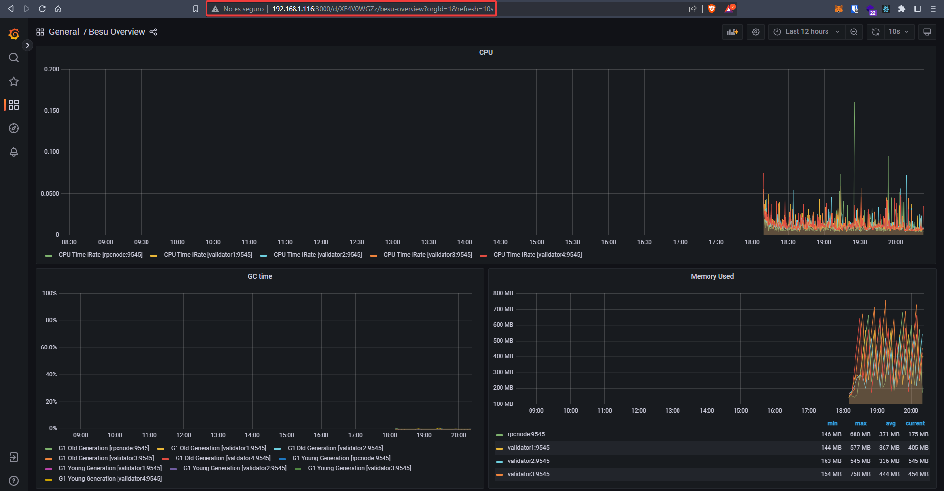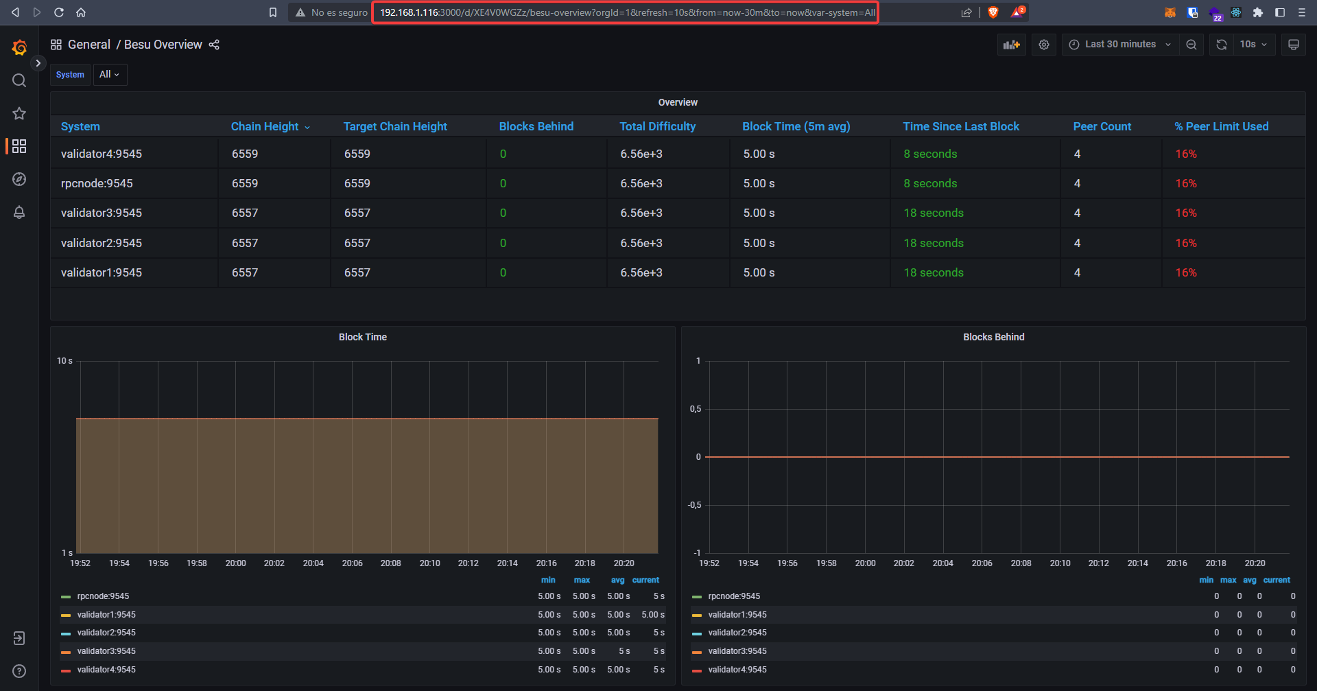 Por último, comprobaremos el estado de nuestra red usando Grafana.
