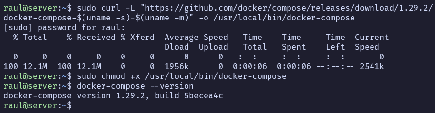 Después, instalaremos Docker Compose, que nos permitirá definir y ejecutar aplicaciones compuestas por múltiples contenedores Docker.