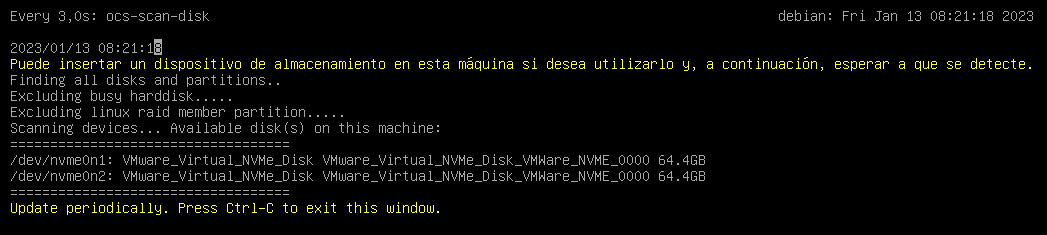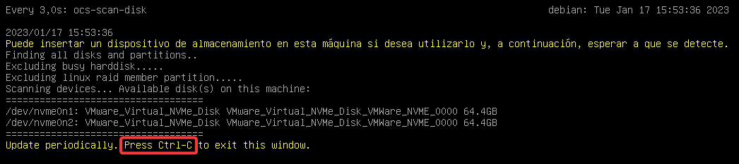 Esperaremos a que detecte todos los discos y después presionamos CTRL + C