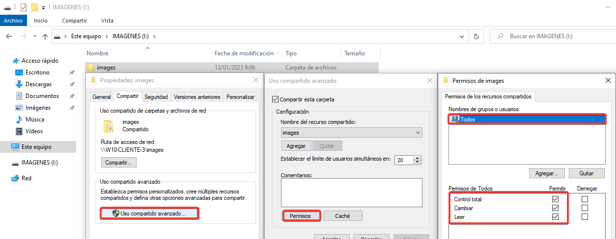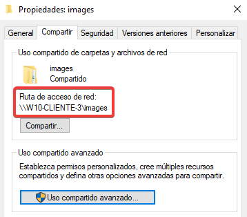 y donde almacenaremos las imágenes. Esta carpeta la vamos a compartir en red.