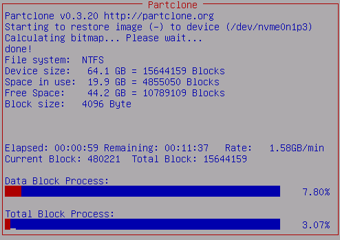 Observamos que se ha detectado el disco y se va a clonar la imagen.