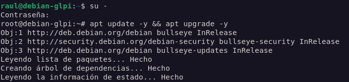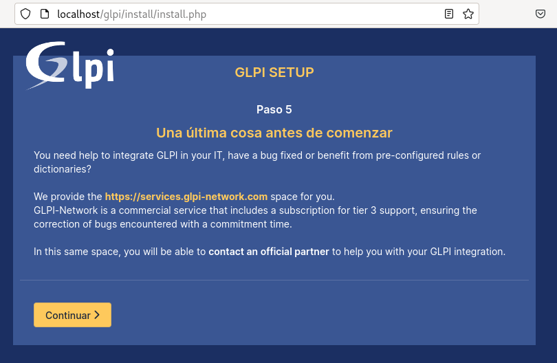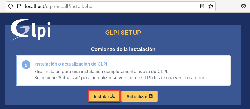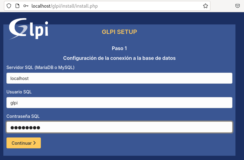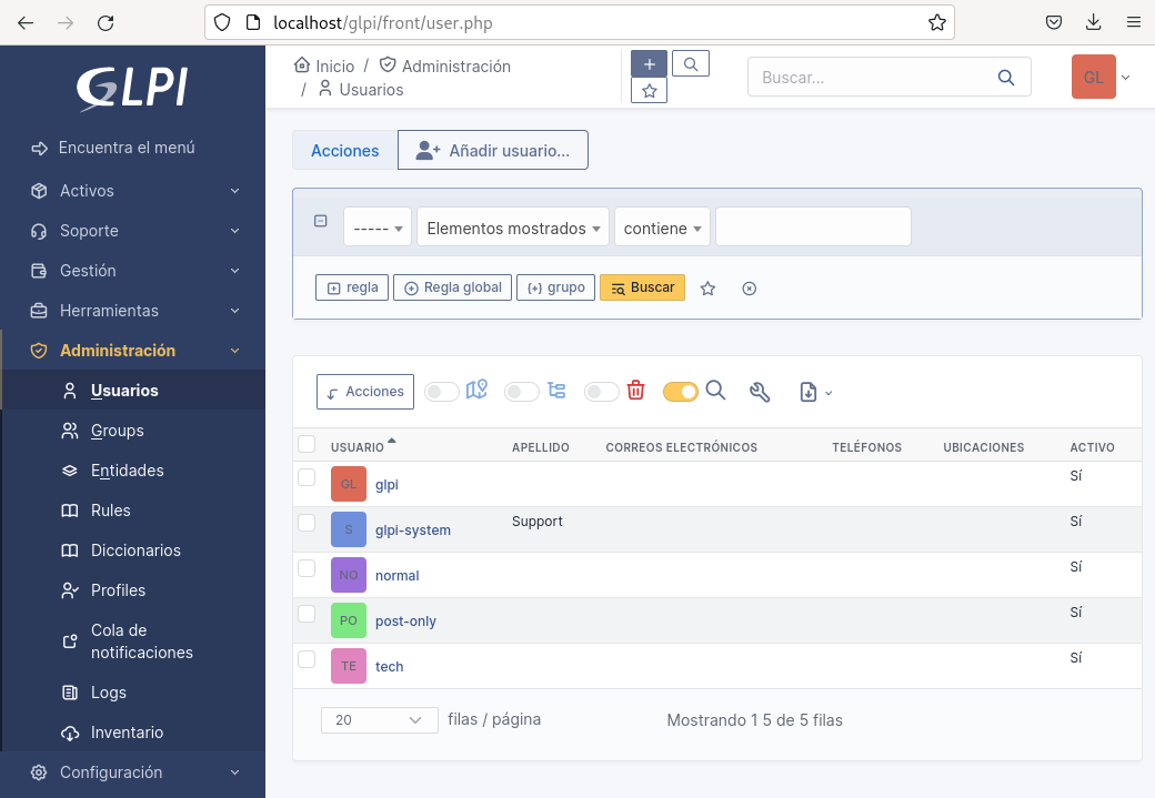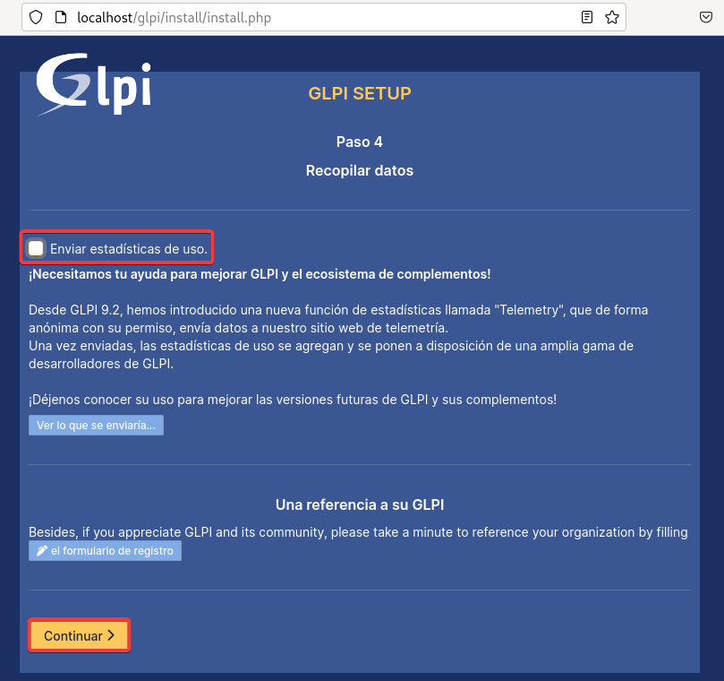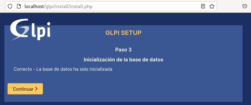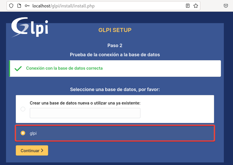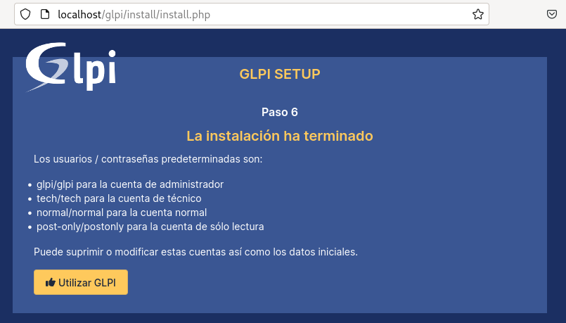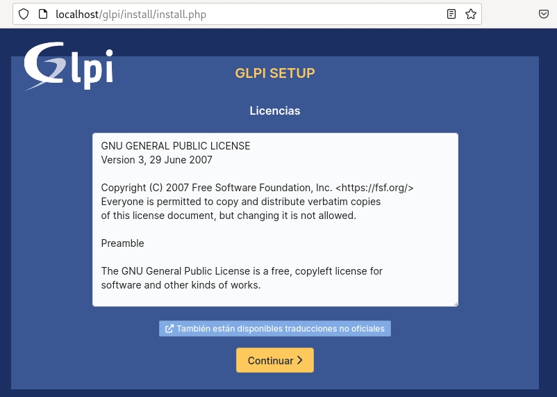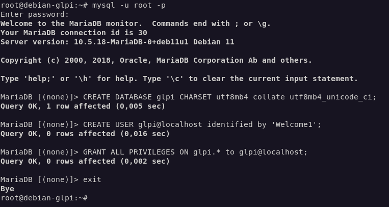 . Crearemos una nueva base de datos, y un usuario llamado glpi. Le daremos todos los privilegios a este usuario en la base de datos.